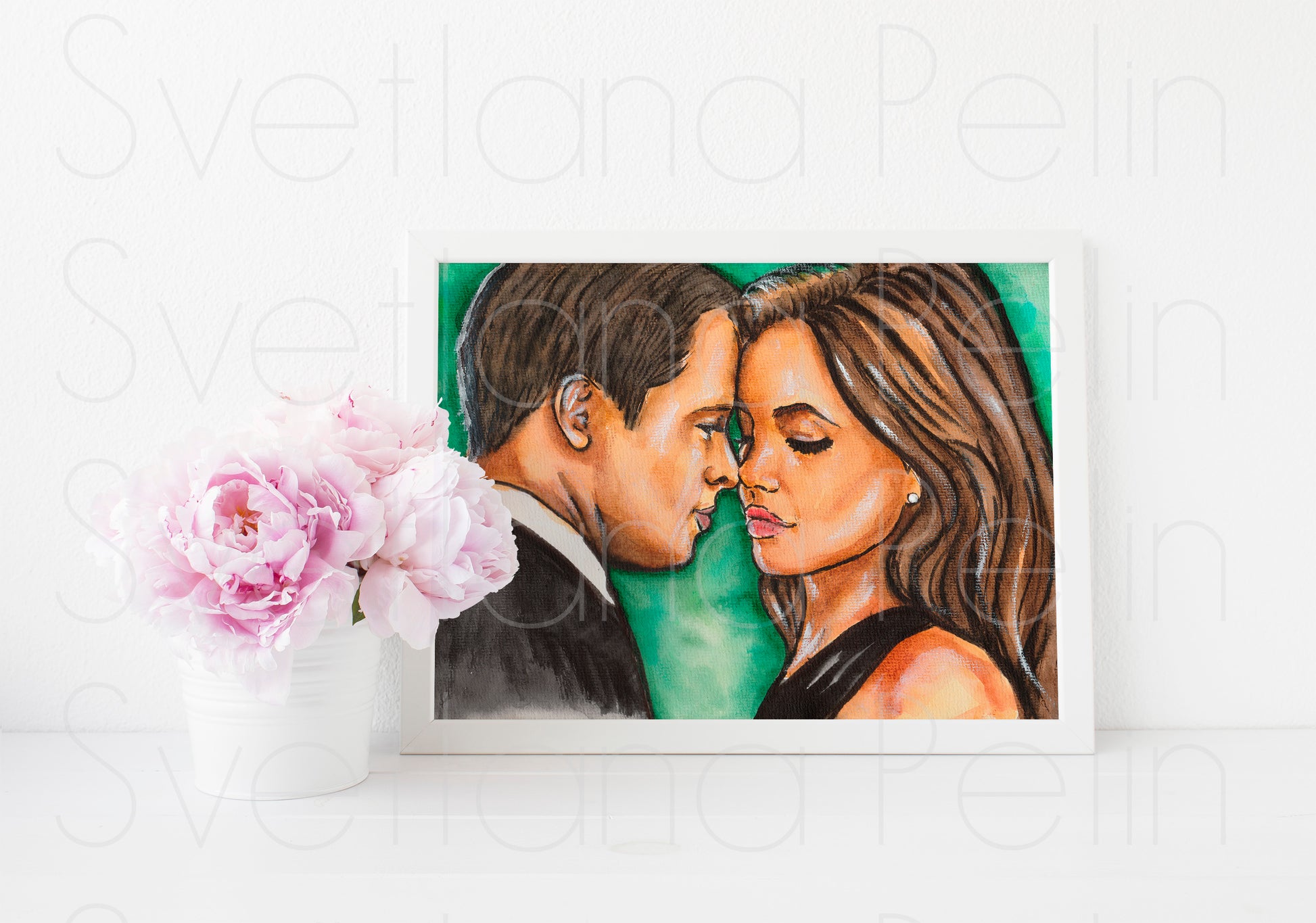 Angelina Jolie, Brad Pitt, ORIGINAL Watercolor Painting, Artwork by Svetlana Pelin