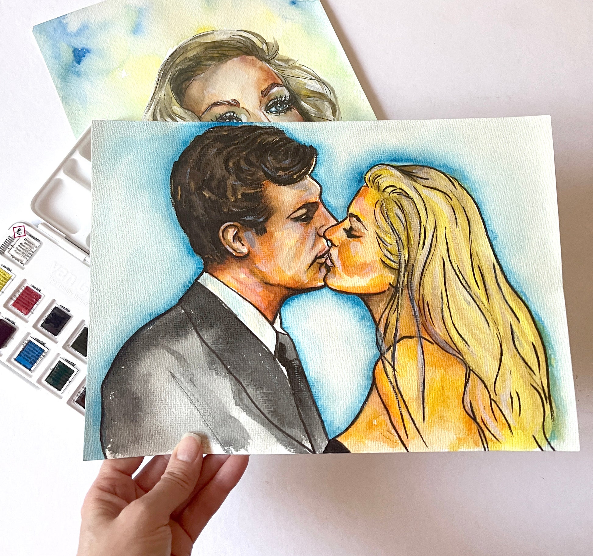 Anita Ekberg, Marcello Mastroianni, La Dolce Vita, ORIGINAL Watercolor Painting, Artwork by Svetlana Pelin