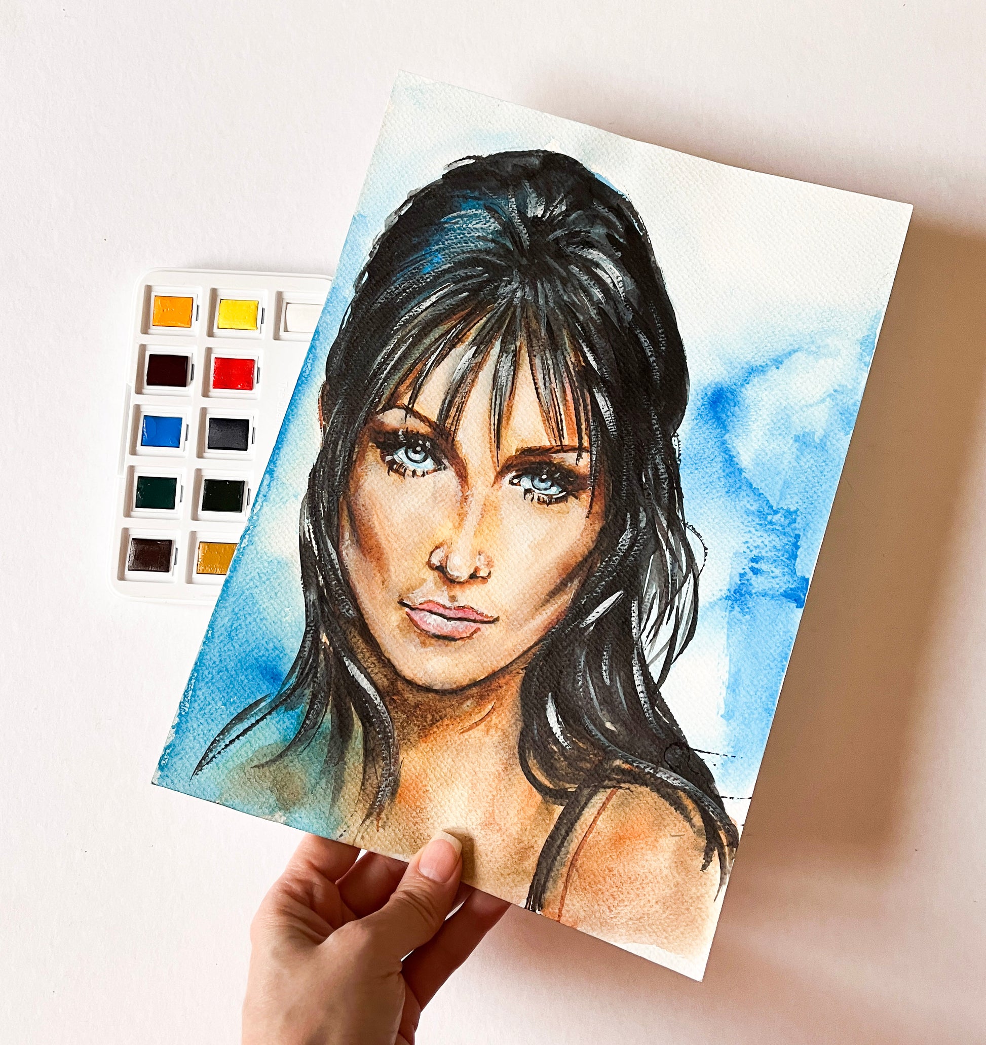 Carla Bruni, CBS, ORIGINAL Watercolor Painting, Artwork by Svetlana Pelin