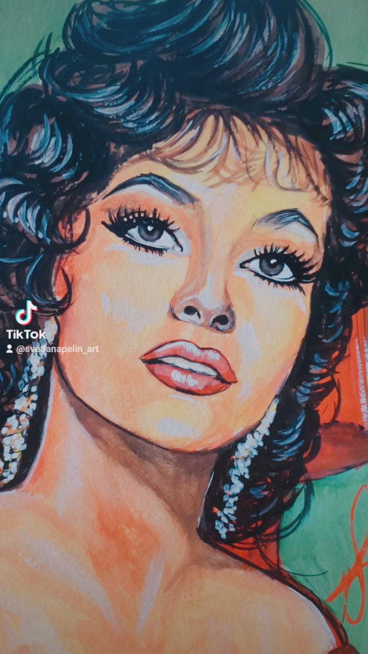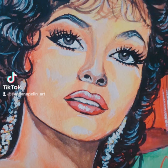 Gina Lollobrigida, Esmeralda, Notre-Dame de Paris, ORIGINAL Gouache painting, Artwork by Svetlana Pelim