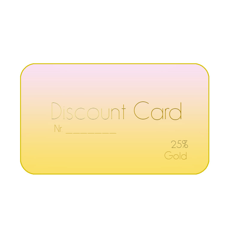 When you make a purchase exceeding $1000, you receive a GOLD card with a 25% discount