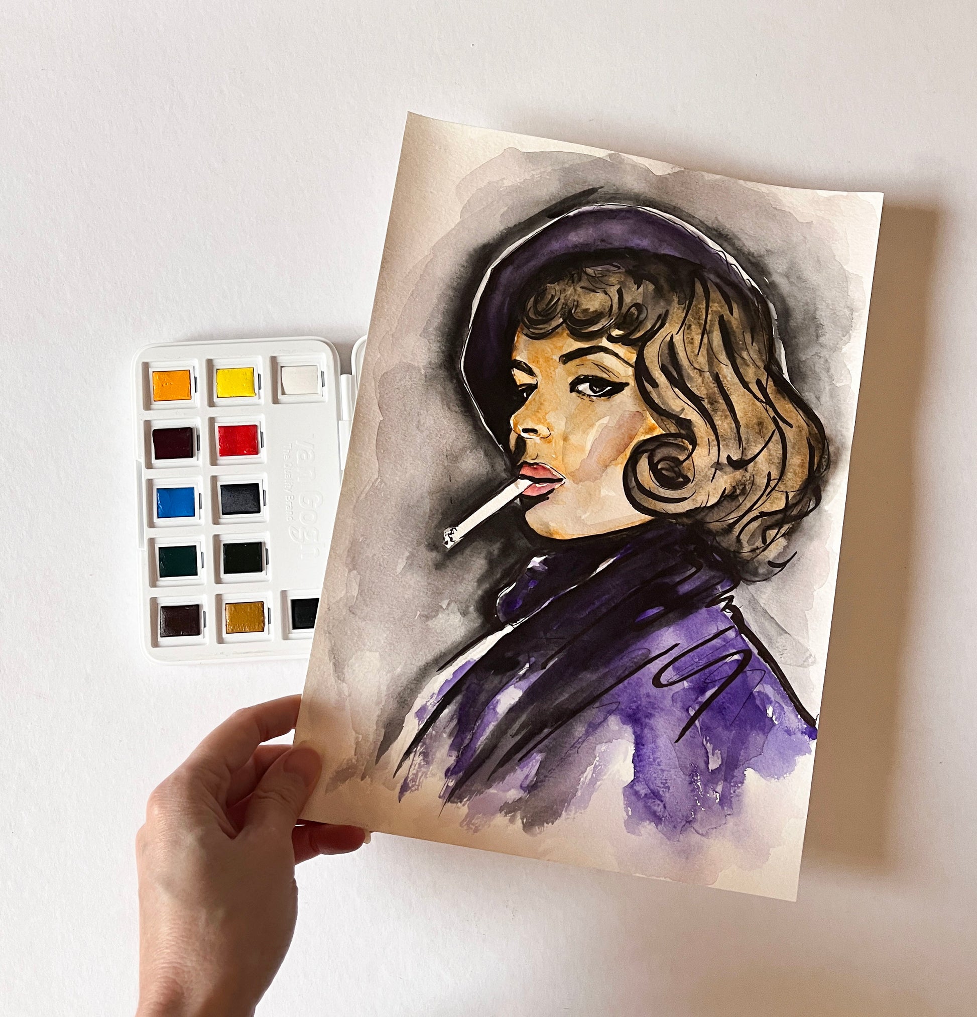 Ingrid Bergman, Arch of Triumph, ORIGINAL Watercolor Painting, Artwork by Svetlana Pelin