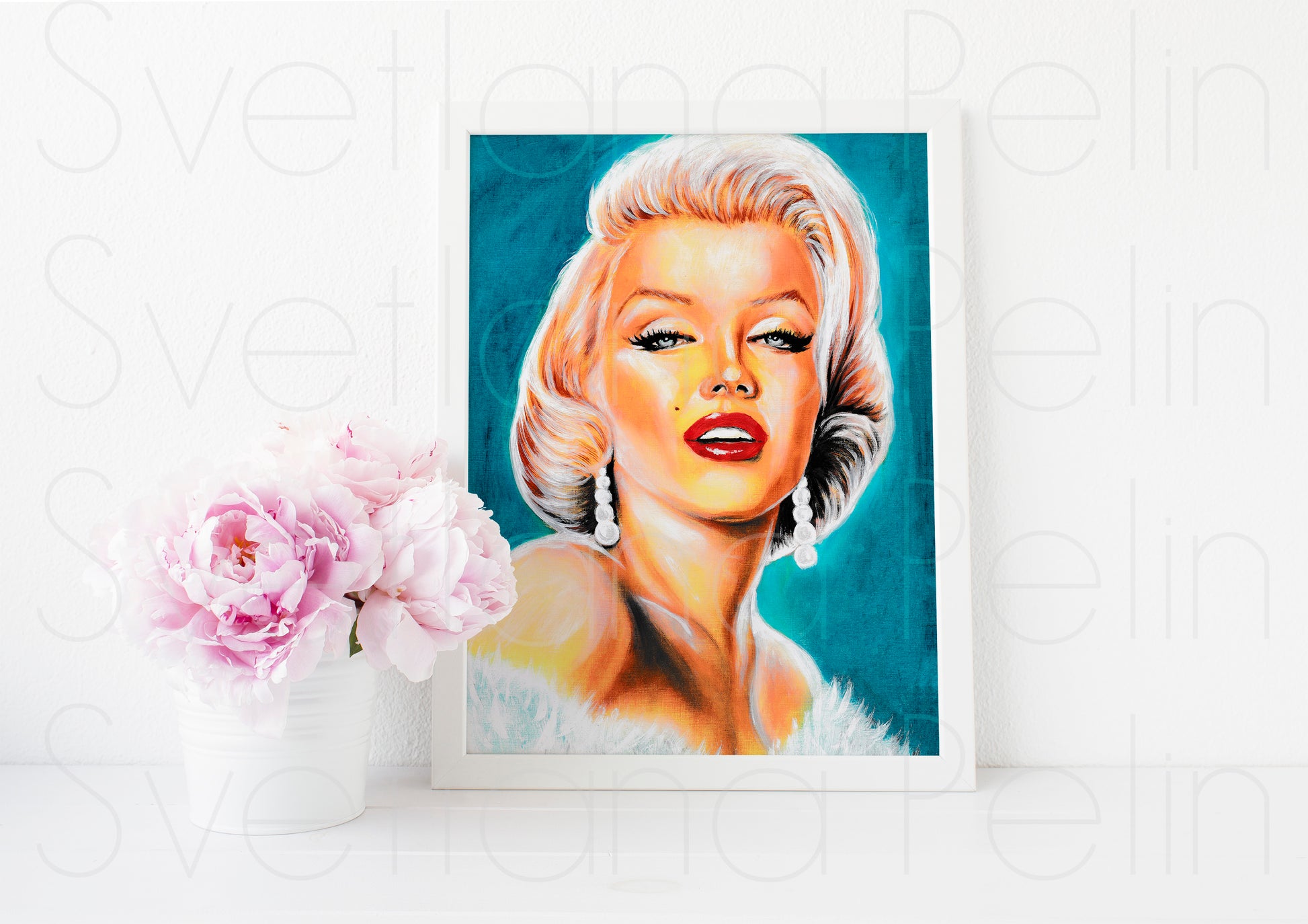 Marilyn Monroe, Gene Trindl, White fur, ORIGINAL Oil painting, Artwork by Svetlana Pelin